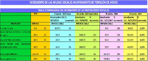 Nuevo incremento ayudas sociales 2019