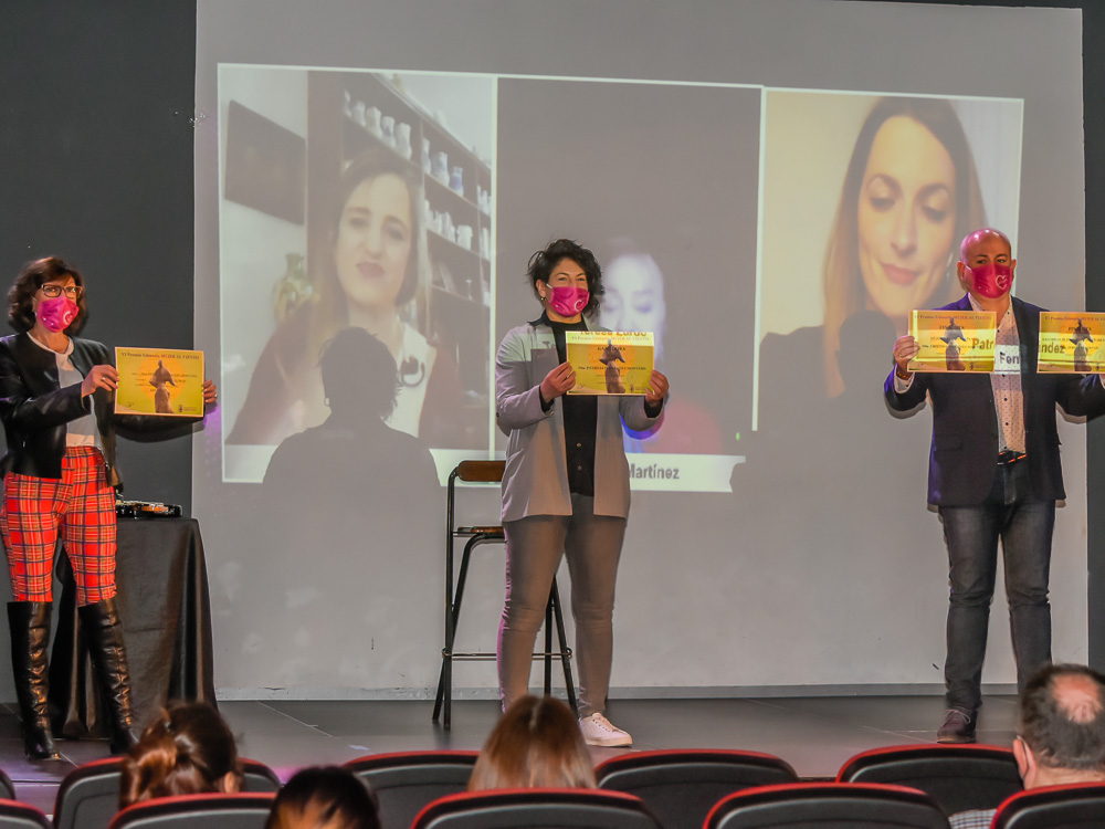 • La ganadora recibió como premio 500 euros, que se entregaron a la autora en concepto de anticipo de derechos de autor. Las dos finalistas, Cristina Martínez Martín, con “Mujeres de luna llena”, y Teresa Zurdo Gil con “Las chicas buenas no vuelven a casa solas”, también verán su obra publicada