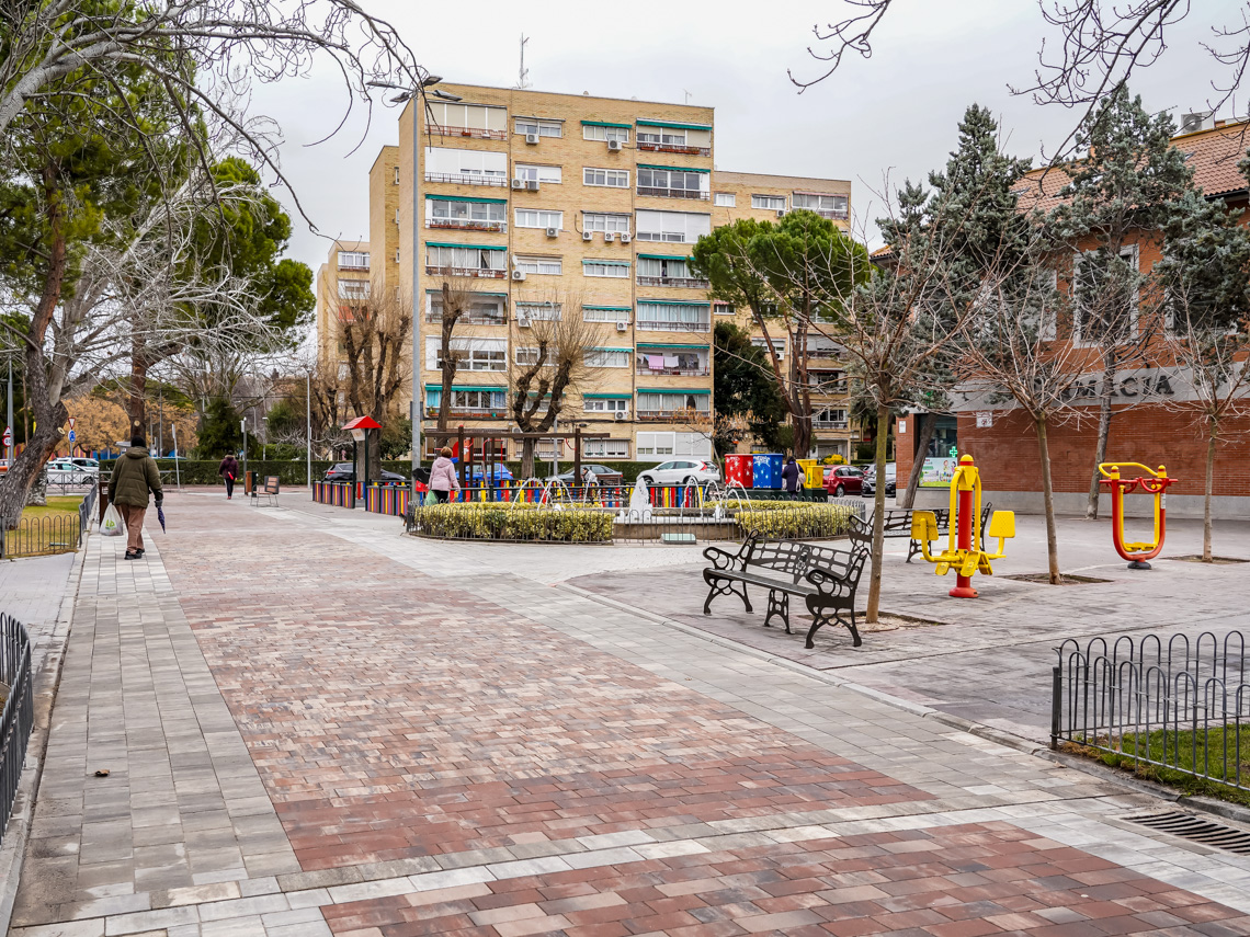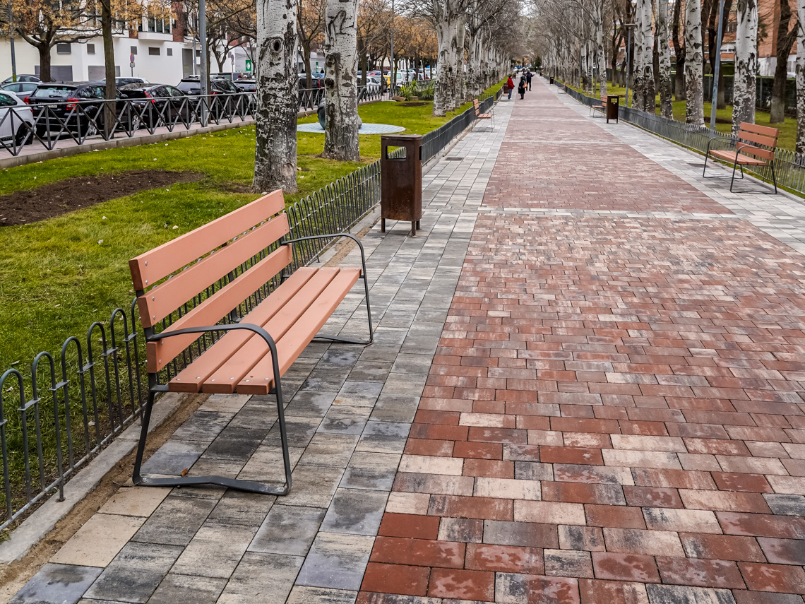 Torrejón de Ardoz, 30 de enero de 2025. Los trabajos han consistido en la remodelación de la acera de la avenida de Madrid paralela al Paseo de la Chopera entre las calles Turín y avenida Virgen de Loreto, reparando también los alcorques de los árboles que se encontraban levantados por el crecimiento de las raíces de los mismos, así como la reparación de las canalizaciones de alumbrado público y la instalación de baldosa antideslizante roja con cenefa gris.