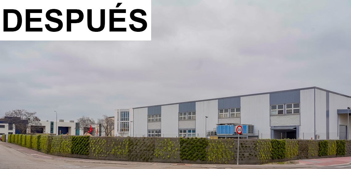 Esta actuación contribuye a la reducción de las emisiones de gases de efecto invernadero, a disminuir los intervalos de temperatura extremos, incrementando la temperatura ambiente en invierno y bajándola en verano. Además, la ubicación del muro vegetal supone una importante mejora visual en una de las entradas al polígono.