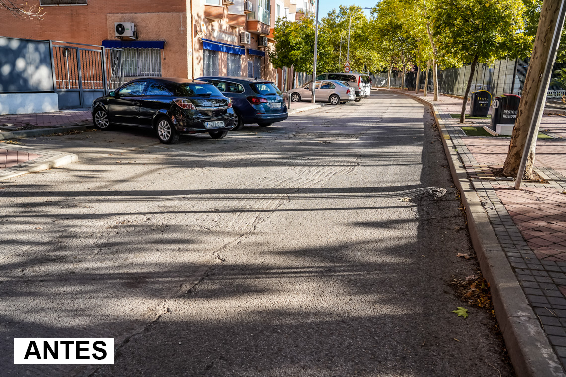 Torrejón de Ardoz, 13 de noviembre de 2025. Todavía quedan remates por realizar en algunas de estas calles al estar realizándose conexiones en la red de alcantarillado por parte del Canal de Isabel II. Se asfaltan 16.315 metros cuadrados con mezcla bituminosa en caliente tipo AC16/22 en capa de rodadura. Además, gracias a esta actuación, previamente se ha renovado la red de saneamiento, mejorando el funcionamiento de la red de alcantarillado, por aumento de sección y renovado materiales y acometidas a edificios.
