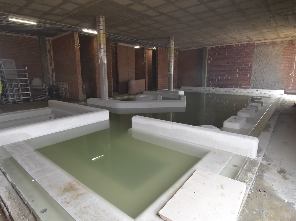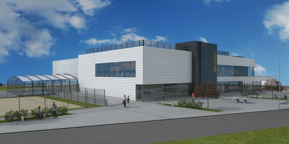 • El Centro Deportivo Inacua dispondrá de una zona de agua con una piscina de invierno polivalente de 6 calles y otra piscina de verano con cerramiento y cubierta retráctil para su uso en invierno, además contará con una zona termal que incluye una zona de spa con vaso activo de 90m2, jacuzzi, poza fría, y equipamiento de baño de vapor, sauna, caldarium o terma romana, pediluvio y zona de contrastes con fuente de hielo y duchas