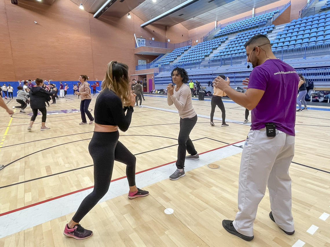 Torrejón de Ardoz, 21 de noviembre de 2022. El objetivo de esta Master Class, que fue impartida por el torrejonero, Víctor García, campeón de España de Defensa Personal Policial y especialista en defensa personal femenina, además de otras modalidades es ayudar a las mujeres a reconocer, prevenir y defenderse de las agresiones, aumentando la capacidad de protegerse a través de diversas técnicas de autodefensa femenina. En este sentido, las participantes quedaron tan satisfechas que demandaron mayor duración y más jornadas de este tipo.