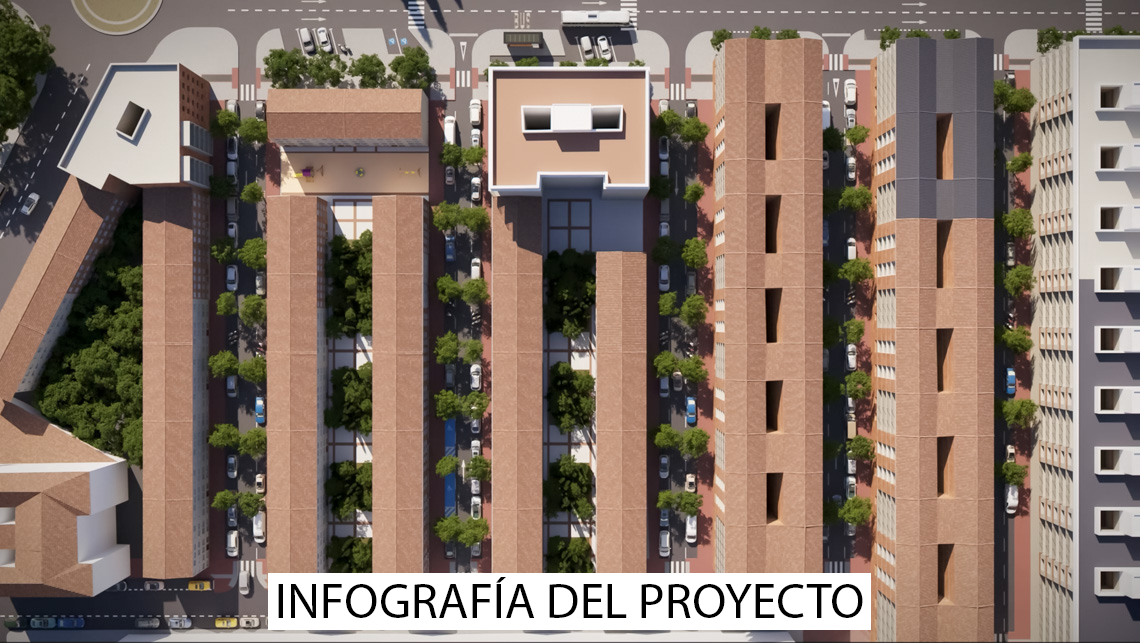 También se mantiene el aparcamiento en línea en ambos márgenes de las calles y, además, se crean nuevas plazas de aparcamiento en el lugar que ahora ocupan naves abandonadas, derribando éstas, tras el inminente acuerdo con la propiedad.
