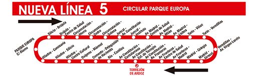 - Nueva línea 5: L5 Circular Parque Europa. Esta nueva línea en doble sentido recupera la antigua circular con la ampliación de su trayecto hasta el Parque Europa.