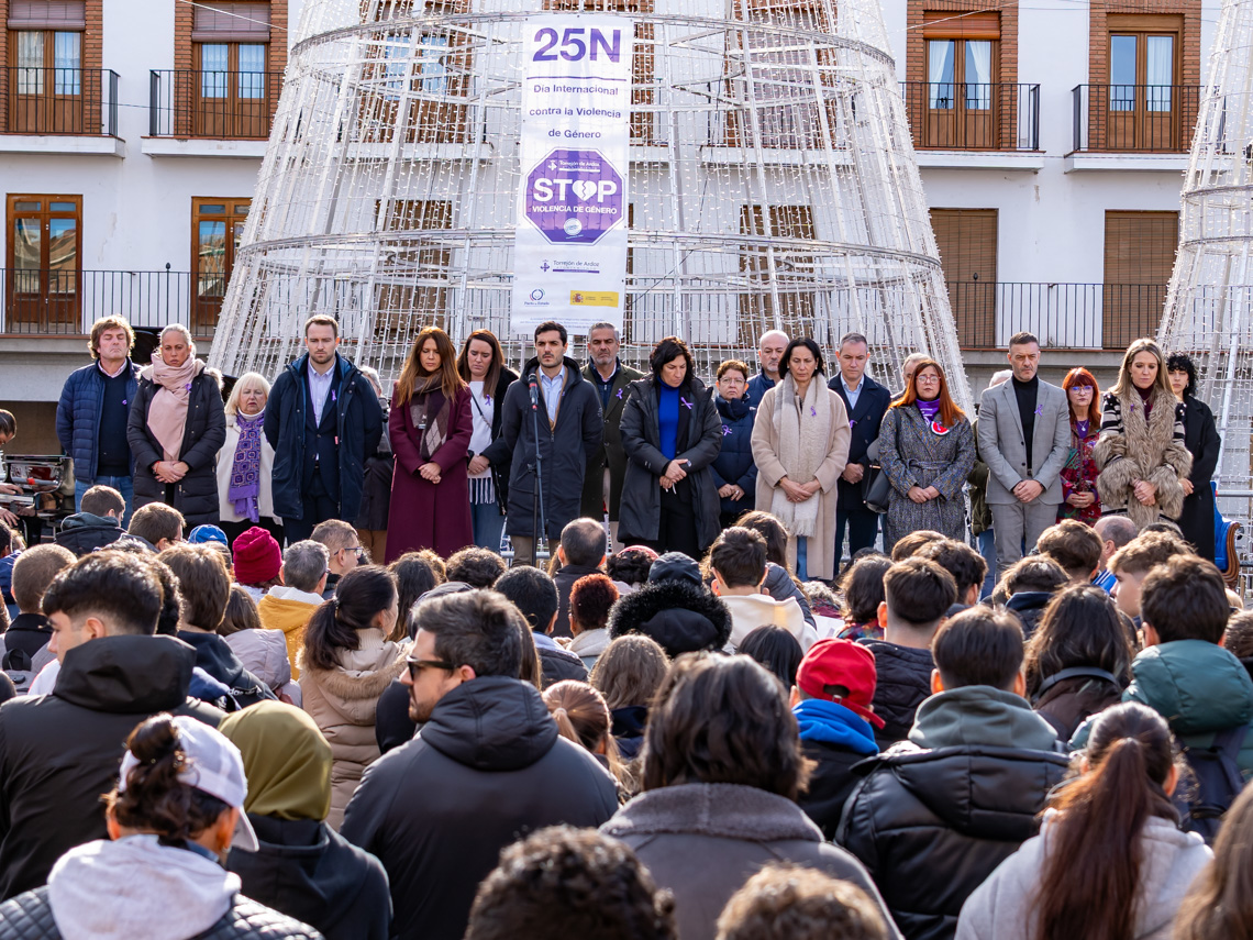 • Con motivo del Día Internacional Contra la Violencia de Género que está teniendo lugar hoy martes, 25 de noviembre, Torrejón de Ardoz ha guardado un minuto de silencio, en la Plaza Mayor como homenaje y en memoria a todas las mujeres asesinadas y que ha contado con el espectáculo “Aquello que te dije una vez”. Además, el alumnado de los institutos de Torrejón de Ardoz ha realizado una pequeña lectura de los cuentos creados en el aula. Durante el acto, el alcalde, Alejandro Navarro, acompañado por la Corporación Municipal, ha leído con voz firme, pero cargada de emoción, unas sentidas palabras, trasmitiendo un claro mensaje: “que cada una de las vidas arrebatadas por la violencia de género representa una tragedia no solo para las víctimas, sino para toda la sociedad en la que no puede tener cabida esta lacra social”