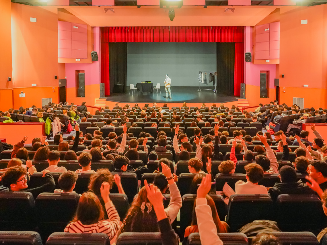 Torrejón de Ardoz, 25 de noviembre de 2025. También hoy 25 de noviembre, en dos sesiones, en el Teatro Municipal José María Rodero, se ha realizado el Acto Institucional dirigido al alumnado de 4º de la ESO de los institutos de la ciudad, en el que ha tenido lugar la representación teatral “Ni tú, ni yo” y que ha contado con la presencia del alcalde, Alejandro Navarro Prieto, y de la concejala de Igualdad y Festejos, María Eugenia Gil.