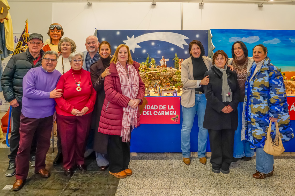 Torrejón de Ardoz, 1 de diciembre de 2025. La concejala de Festejos e Igualdad, María Eugenia Gil; el edil de Cultura, José Antonio Moreno; la concejala de Turismo, Mirian Gutiérrez y otros miembros de la corporación Municipal acudieron el pasado viernes a la inauguración de la muestra que reúne una amplia representación de belenes elaborados por estas asociaciones culturales, vecinales y sociales de la ciudad.