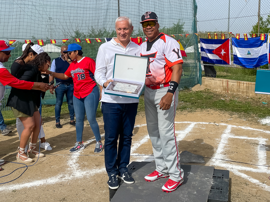 Torrejón de Ardoz, 3 de mayo de 2022. El concejal de Deportes y Movilidad, José Miguel Martín Criado, estuvo presente y recibió una placa de parte de los organizadores como muestra de agradecimiento por la colaboración y ayuda prestada por parte del Ayuntamiento a la hora de poder organizar este “Clásico Nacional de Managers de Softball”.