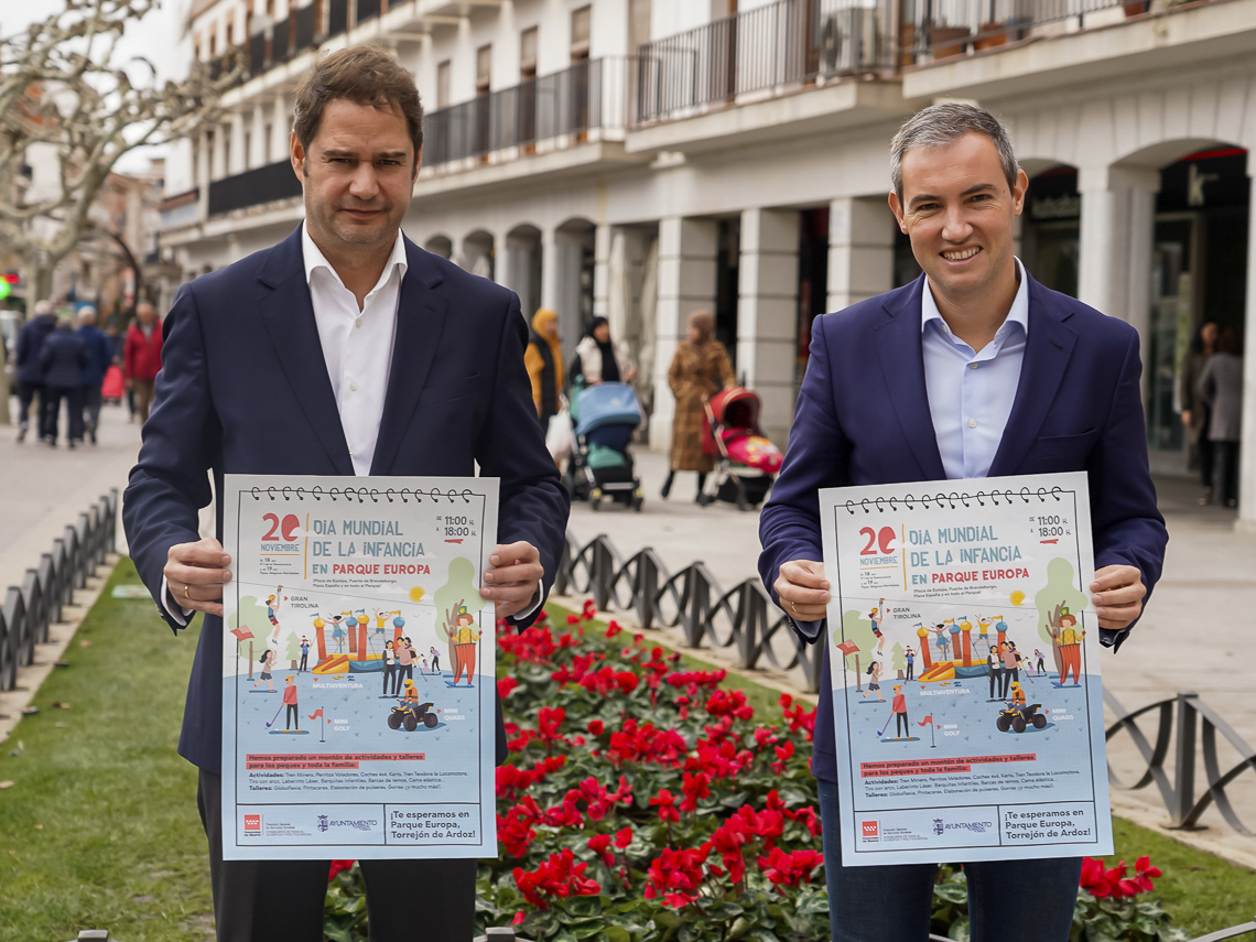 Bajo el lema “No hay derechos pequeños”, el Ayuntamiento de Torrejón de Ardoz celebra el Día Mundial de la Infancia que tendrá lugar el próximo domingo 20 de noviembre, con diferentes talleres y actividades que tendrán como objetivo dar visibilidad a los derechos y valores contemplados en la Convención de los Derechos del Niño. El alcalde, Ignacio Vázquez, y el concejal de Educación, Bienestar e Inmigración, Rubén Martínez, han presentado esta mañana el amplio programa que comenzará este próximo viernes 18 de noviembre en el Paseo de la Democracia (zona del mercadillo de Soto Henares), donde desde las 16:00 hasta las 20:00 horas los pequeños podrán disfrutar de piscina de bolas, camas elásticas, pista americana hinchable. Además, estará el punto municipal informativo “Torrejón contra el maltrato infantil”.