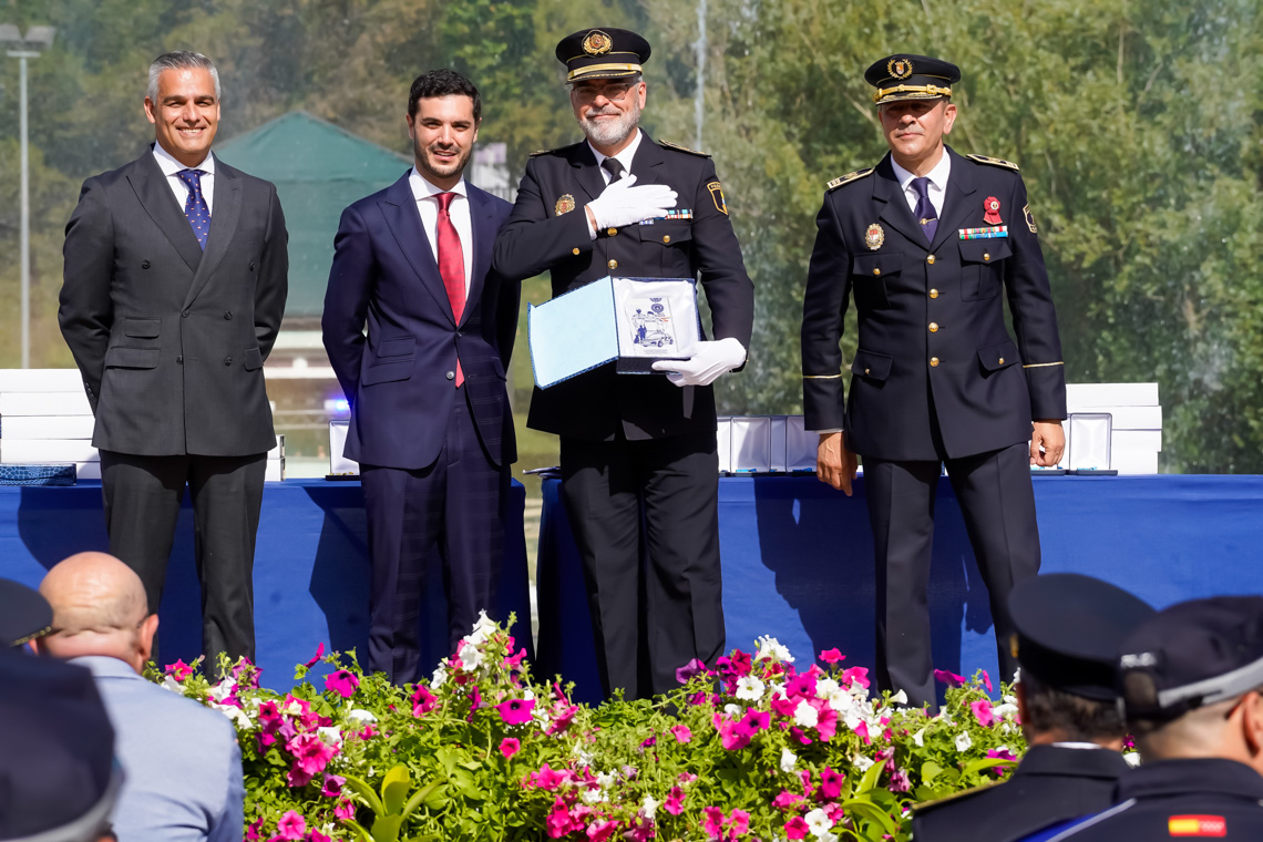 Torrejón de Ardoz celebró el Día de la Policía con un emocionante acto de reconocimiento a la labor de los agentes y cuerpos de seguridad, presidido por el alcalde, Alejandro Navarro, y donde también se distinguió a Esperanza Aguirre por las BESCAM