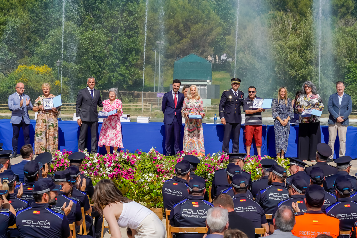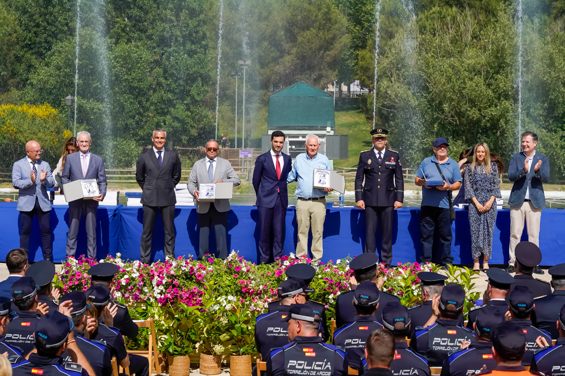 El Ayuntamiento de Torrejón de Ardoz celebró el Día de la Policía con un emotivo acto de reconocimiento a la labor de los agentes y cuerpos de seguridad, presidido por el alcalde, Alejandro Navarro, y donde también se distinguió a Esperanza Aguirre por su colaboración con el Cuerpo de la Policía Local al crear en 2004 la BESCAM. El Día de la Policía de Torrejón de Ardoz 2025 San Juan Bautista se celebró, el pasado 31 de mayo, en el incomparable marco del Parque Europa.