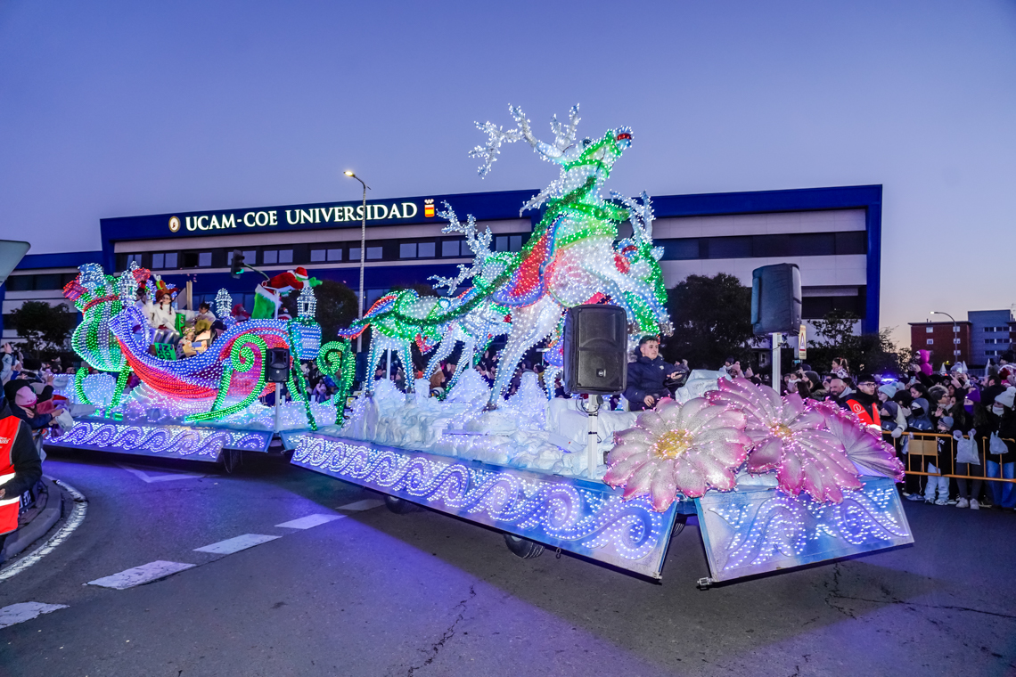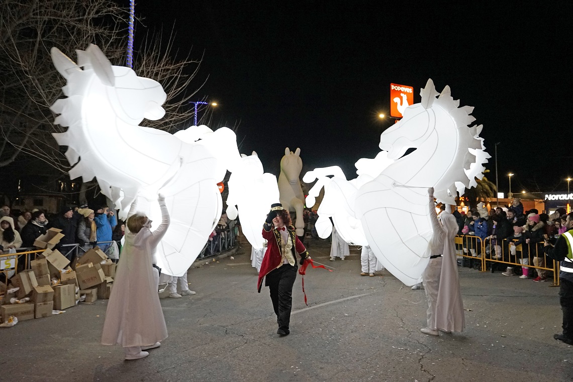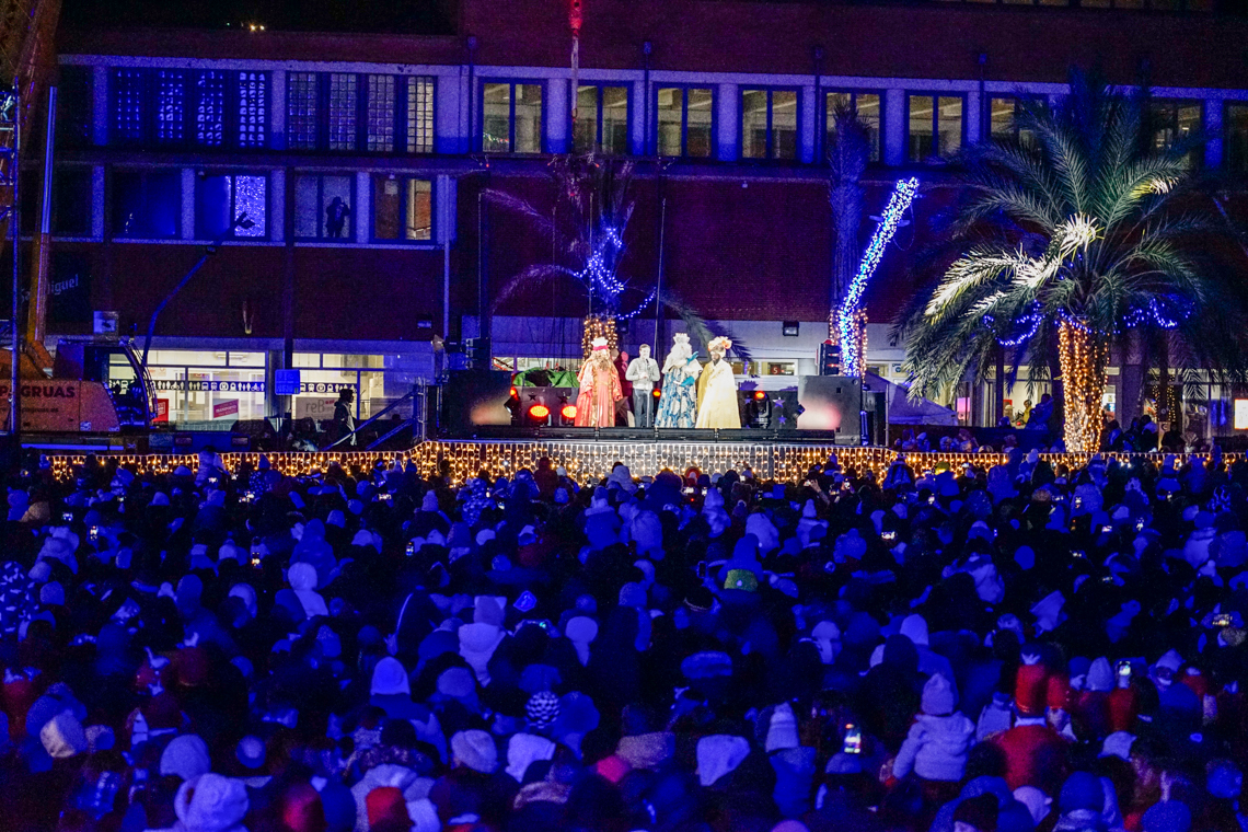• La noche concluyó en una abarrotada Plaza España que acogió los emotivos saludos del alcalde, Alejandro Navarro Prieto, y de Sus Majestades los Reyes Magos, Melchor, Gaspar y Baltasar, y el gran espectáculo final a cargo de la prestigiosa compañía internacional Grupo Puja!, con su show aéreo “Los Superguachis”, poniendo el broche de oro a una jornada mágica.