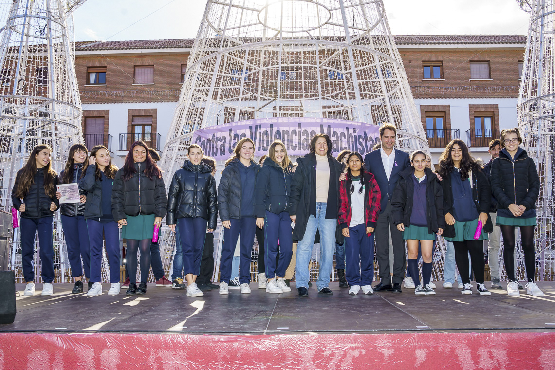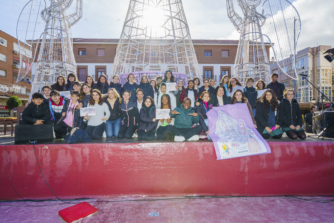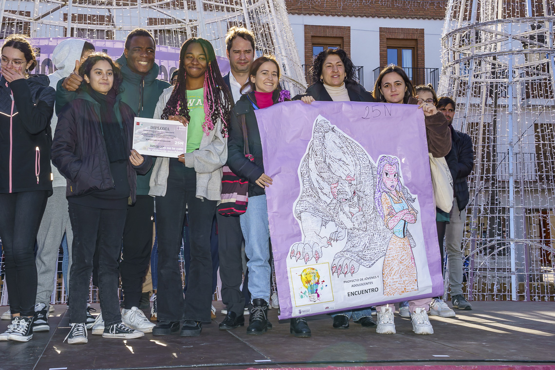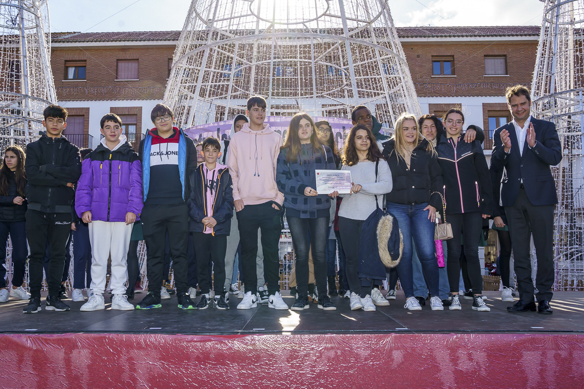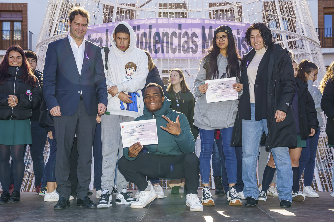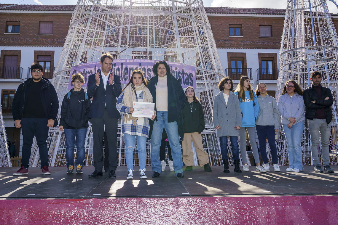 • También, la concejala de Mujer, Miriam Gutiérrez, ha agradecido a los institutos que han participado en el concurso de TikTok, nombrando a los ganadores. Todos ellos han subido al escenario, donde el alcalde y la edil les han hecho entrega de unos diplomas. De fondo sonaba la música que han trabajado en el TikTok de Bella y Bestia del rapero Porta