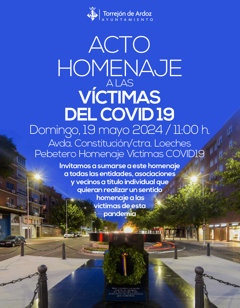 Torrejón de Ardoz realizará un Acto Homenaje a las víctimas del COVID-19 este domingo, 19 de mayo, a las 11:00 horas