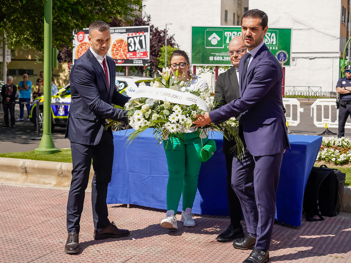 • Un minuto de silencio, la lectura del poema “Recuérdame”, de David Harkins, por parte de la Asociación Tertulia Poética El Desván, las ofrendas florales en nombre de la ciudad de Torrejón de Ardoz, realizadas por el alcalde, Alejandro Navarro Prieto y los portavoces de los grupos políticos representados en el Ayuntamiento, los familiares de las víctimas, las asociaciones de la localidad y los vecinos fueron los protagonistas de este acto en el que también sonaron algunas de las canciones más representativas de la pandemia