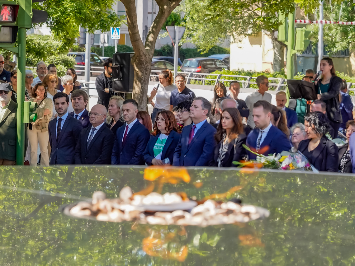 Torrejón de Ardoz, 19 de mayo de 2025. Un minuto de silencio, la lectura del poema “El Viaje Definitivo”, de Juan Ramón Jiménez, por parte de la Asociación Tertulia Poética El Desván, las ofrendas florales en nombre de la ciudad de Torrejón de Ardoz, realizadas por el alcalde, Alejandro Navarro y los portavoces de los grupos políticos representados en el Ayuntamiento, entre otras autoridades, los familiares de las víctimas, las asociaciones de la localidad y los vecinos fueron los protagonistas de este acto en el que también sonaron algunas de las canciones más representativas de la pandemia.