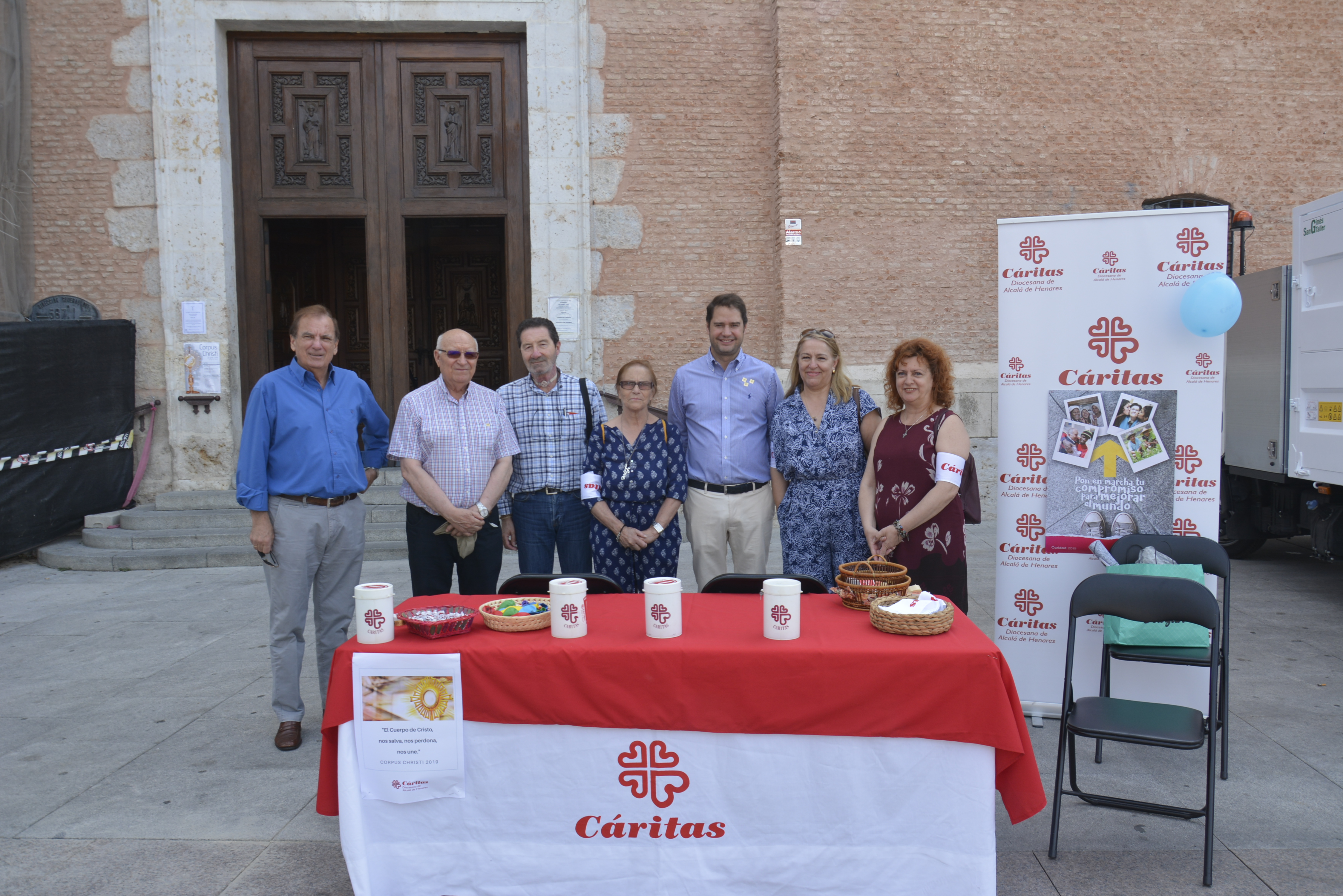La Solemnidad del Corpus Christi, Día de la Caridad, es una de las fiestas más importantes para la familia de Cáritas, porque se celebra la Fiesta del Cuerpo y la Sangre de Cristo. Por ello, han querido instalar una mesa informativa dentro del marco de la campaña del Día de la Caridad que este año se celebra bajo el lema “Ponte en marcha. Tu compromiso mejora el mundo”.