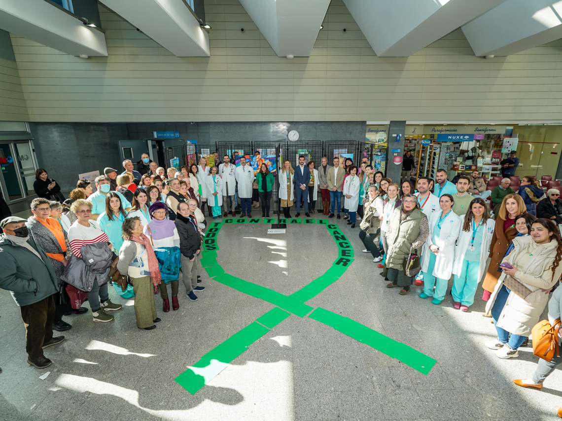 Torrejón de Ardoz se suma a la conmemoración del Día Mundial contra el Cáncer con un gran lazo verde humano en el Hospital y la exposición “Colores que curan” creada por sus pacientes oncológicos