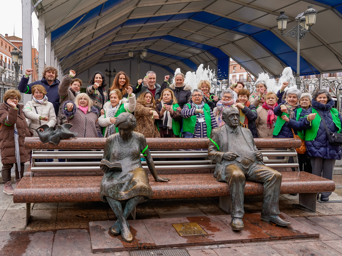 • Asimismo, la Asociación Española Contra el Cáncer impulsa por tercer año consecutivo la iniciativa Brazaletes de Esperanza que bajo el lema “El símbolo que nos une”, busca convertir este lazo verde en un símbolo universal de acompañamiento, visibilidad y esperanza para las personas con cáncer y sus familias. Por ello, se ha puesto uno de estos brazaletes en el conjunto escultórico “Homenaje a los mayores” de la Plaza Mayor, simbolizando así un gesto de unión y esperanza contra la enfermedad