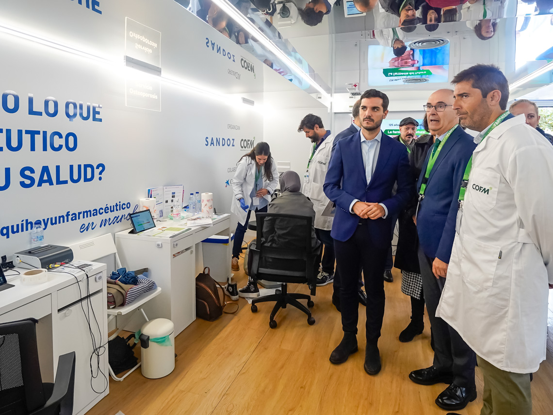 Torrejón de Ardoz, 16 de octubre de 2024. Con motivo de su 125 aniversario, el Colegio Oficial de Farmacéuticos de Madrid (COFM) ha puesto en marcha esta campaña en colaboración con Sandoz Iberia, que recorre distintos municipios madrileños para mostrar la labor asistencial de los farmacéuticos comunitarios y ofrece el acceso a pruebas gratuitas para la prevención de enfermedades como la diabetes y la hipertensión, así como otras evaluaciones relacionadas con la salud respiratoria y la osteoporosis, la adherencia terapéutica y la prevención de hábitos perjudiciales como el tabaquismo.