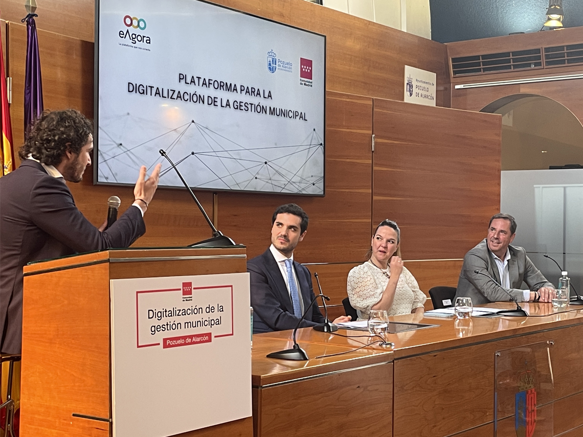• La Comunidad de Madrid ha lanzado la plataforma piloto eAgora, un espacio digital que permite a los ayuntamientos centralizar la gestión de servicios públicos como la reserva de espacios municipales (pistas deportivas, piscinas, teatro, agenda cultural y de ocio), la comunicación con la ciudadanía o la gestión de incidencias en la vía pública
