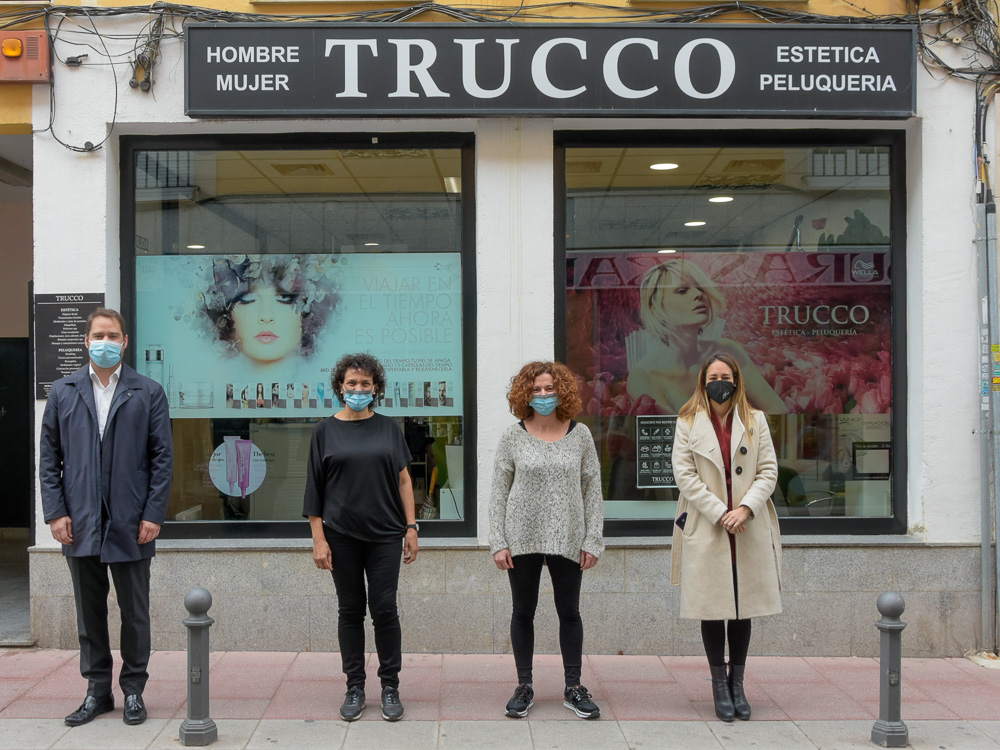 “TRUCCO” es un centro de peluquería y estética que presta servicio desde 1995 en Torrejón de Ardoz. El alcalde, Ignacio Vázquez, y la concejala de Empleo y Contratación, Ainhoa García, visitaron el pasado 2 de marzo junto a sus propietarias, Elena García y Pilar Juan, sus instalaciones situadas en el número 10 de la calle San Isidro que han creado cuatro puestos de trabajo en la localidad. En este sentido, la visita se enmarca dentro del decidido apoyo que el Gobierno local tiene con las diferentes empresas ubicadas en el término municipal de Torrejón con el objetivo de fomentar riqueza y puestos de trabajo en la ciudad, ya que son ellas las que generan y mantienen la mayoría de los empleos.