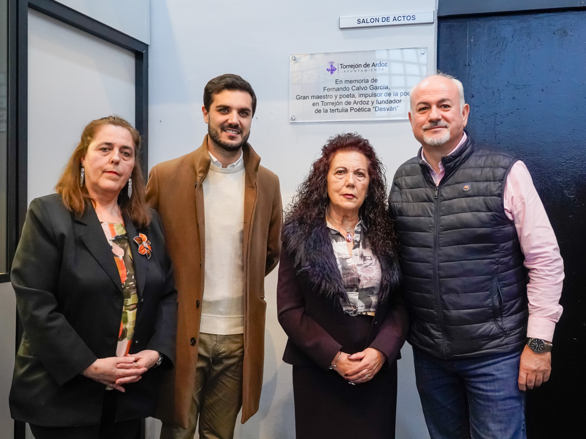 Una placa en el Centro Cultural Las Fronteras siempre recordará al poeta local, Fernando Calvo García, fundador de la Tertulia Poética Desván. El Ayuntamiento de Torrejón de Ardoz ha decidido dedicar una placa a este excelente escritor, que el alcalde, Alejandro Navarro, acompañado por su viuda, Francisca Morales, descubrió el pasado 21 de marzo. La cita se organizó con motivo de la celebración del Día Mundial de la Poesía, que tuvo lugar el pasado 21 de marzo, dentro de un acto organizado por la Tertulia Poética Desván. Bajo el título “Un recuerdo, un poema” el acto comenzó con la presentación a cargo de Juana Sánchez y Carmen G.G. para después continuar con la actuación del grupo de baile "Amanecer", el recital “Tenemos la palabra”, con Ángel Abeso y Sara Segurado y la elaboración de un poema con la colaboración voluntaria del público.