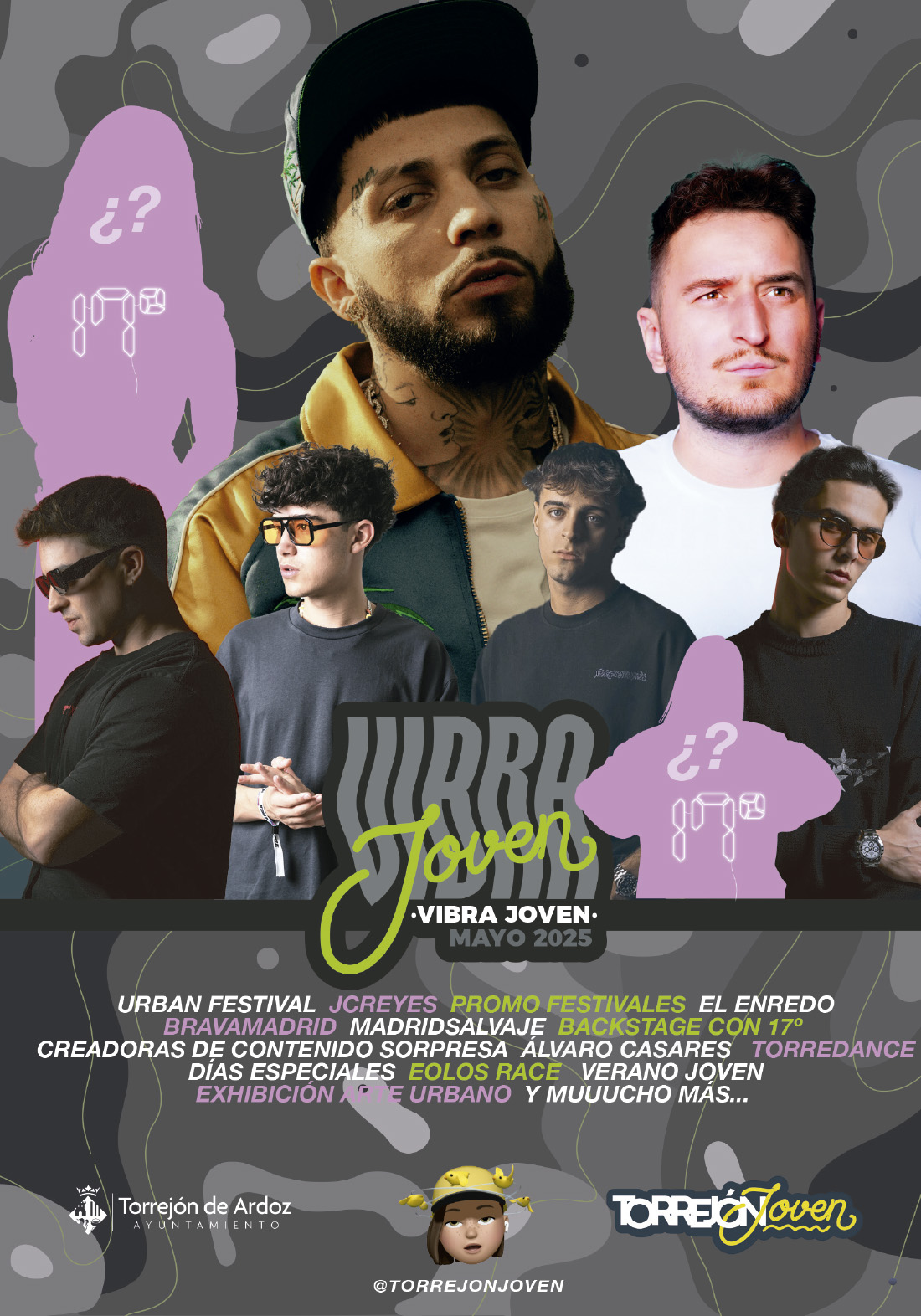 Ya se han desarrollado con gran éxito Torredance y podcast 17grados con un Show Interactivo con creadoras de contenido como Whereisleto con más de 2 millones de seguidores en sus redes sociales, pero aún quedan importantes propuestas entre las que destaca el Urban Festival con el concierto estelar de JC Reyes que se celebrará el viernes 30 de mayo en el Recinto de Conciertos del Ferial con la pre-party más canalla capitaneada por el conocido joven DJ torrejonero, Jorge Vaquero, y que contará también con los DJs Dirizo, Mr Santi y Matt desde las 19:00 horas y con acceso desde las 18:00 horas con actuaciones hasta las 12 de la noche.