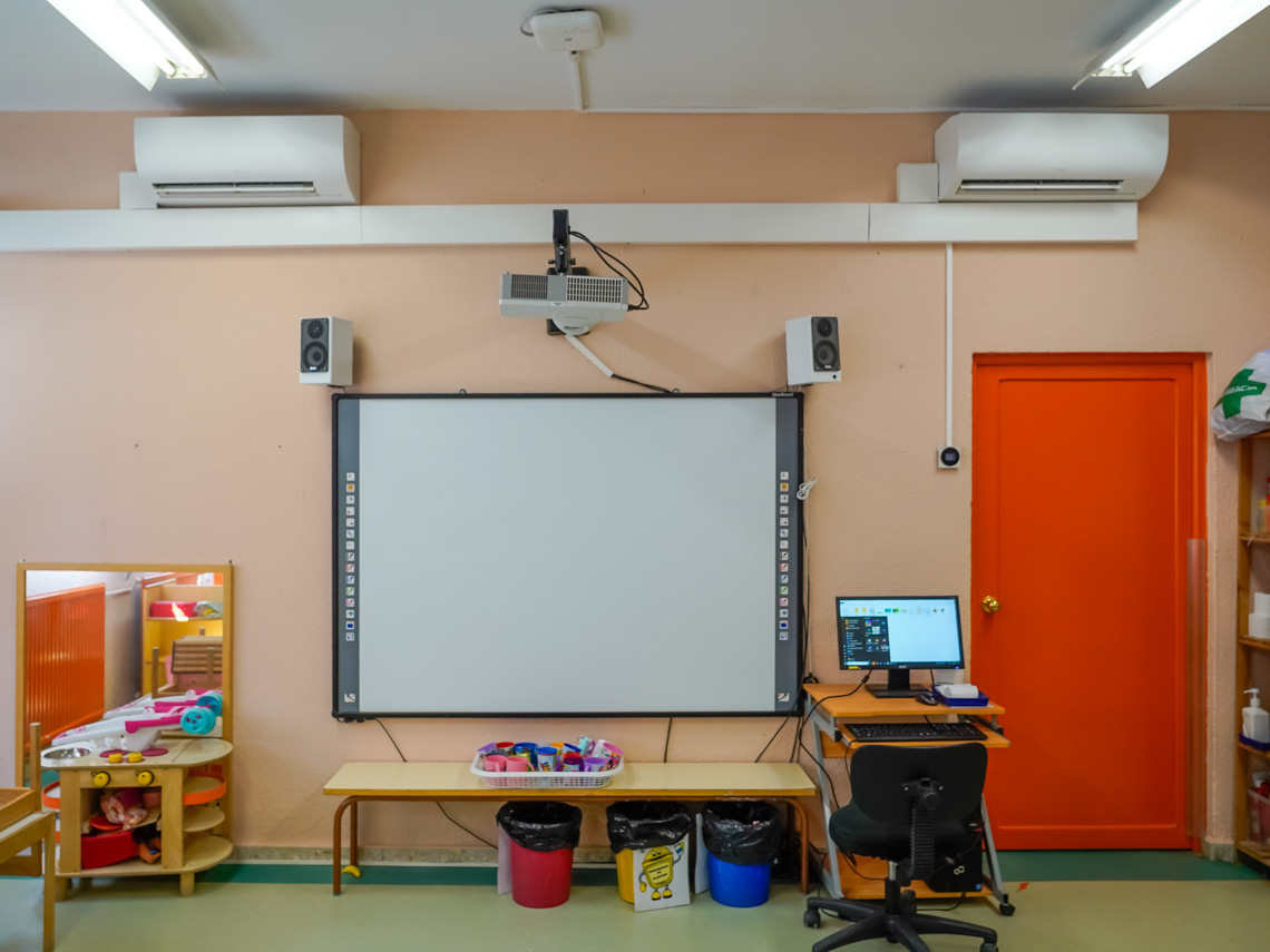 Torrejón de Ardoz, 17 de septiembre de 2025. En total, se instalarán 1.630 aparatos de climatización de bajo consumo, proporcionarán tanto frío como calor y se colocarán los split que sean necesarios en función de la superficie de cada aula, funcionando con el apoyo de la energía eléctrica que generan las placas solares instaladas en los centros para conseguir que la gran mayoría de ellos funcionen con energías renovables alternativas.